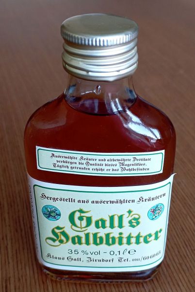 Vyučený soustružník Anton, řečený později „Schnaps - Gall", zakladatel svobodské rodinné manufaktury na výrobu originální bylinné hořké, měl při volbě názvu šťastný nápad a prozíravě si ho pojistil jako zákonem chráněnou obchodní značku. Nejspíš neměl ani tušení, že už v roce 1802 tak nazval své operní dílo německý hudební skladatel abbé Georg Joseph Vogler. Jméno Gall bylo v regionu poměrně rozšířené a je údajně odvozeno od keltských kmenů obývajících starodávnou Galii rozprostírající se na území dnešní Francie, Belgie, Švýcarska a severní Itálie. Rozvětvený rodokmen místní rodiny Gallů sahá až do začátku 18. století. Předkové, převážně zemědělci, žili většinou v nejbližším podhůří Krkonoš. Anton Gall, narozený 10. června 1870 v Horním Starém Městě u Trutnova, se oženil s Marií rozenou Kochovou *17. září 1872 z Rýchor čp. 17 a měli spolu pět dětí: Alfred *11. 11. 1897 Horní Staré Město, Margareta *8. 10. 1898 Dolní Lysečiny, Martha *12. 6. 1900 Dolní Lysečiny, Adolf *9. 9. 1903 Dolní Lysečiny, Alfons *18. 9. 1904 Dolní Lysečiny. Otec rodiny dbal se starozákonní důsledností, aby všichni mužští potomci měli jméno začínající písmenem A jako on a děvčata M jako matka. Ve Svobodě nad Úpou byla rodina Gallova trvale hlášena od 1. dubna 1906 v dnes již neexistujícím čp. 90 v části Tyršovy ulice, která zanikla s výstavbou rychlostní silnice spojující Trutnov a Pec pod Sněžkou v sedmdesátých letech minulého století. Téměř naproti pár kroků přes ulici si v roce 1927 postavil rodinnou vilku čp. 180 s dílnou nejstarší syn Alfred, povoláním sedlář a čalouník, jeden z prvních svobodských výrobců lyžařského vázání. Jeho žena Ida, vyučená švadlena ročník 1907, pocházela ze starobylého rodu alpských dřevařských kolonistů Krkonoš Mitlöhnerů z Velké Úpy III. dnešní Pece pod Sněžkou. On dokonce jako dítě navštěvoval 1. až 5. třídu české obecné školy v Úpici. Když patriarcha rodiny 26. dubna 1939 zemřel, byl pochován na svobodském hřbitově do velkolepě koncipované rozměrné hrobky s náhrobním kamenem z leštěné žuly se značkou dílny kameníka Suske. Jeho jméno na něm shodou historických okolností zůstalo osamocené. Živnost nadále oficiálně vedl až do roku 1944 nejmladší syn Alfons se svou ženou Ernou (9. 11. 1913 Svoboda nad Úpou - 5. 4. 2013 Auerbach) rozenou Formannovou, po matce Adolfině příslušnicí slavného krkonošského rodu Bönschů, majitelů několika velkých hřebenových bud včetně nejstarší Luční boudy. Vzhledem k připojení Sudet k Třetí říši musel „Fonsi" jak mu od dětství říkali doma, uprostřed války narukovat jako příslušník NSDAP, sice zdaleka ne tak horlivý jako bratr Alfred a mnoho dalších svobodských soukmenovců, ke zbraním SS a na východní frontě byl těžce raněn a zajat. Ze sovětského lágru se vrátil za rodinou včetně dalšího věznění ve východním Německu až v roce 1952. Jeho syn Herbert, narozený v roce 1938 ve Svobodě jako první říšský Němec, v současnosti patron vysídlených německých občanů Svobody nad Úpou byl jako sedmiletý v roce 1945 s matkou a sourozenci násilně vystěhován a žije v Auerbachu ve spolkové zemi Sasko v bývalé NDR. Po narovnání poměrů v roce 1989 své rodné město často navštěvuje a má mimo jiné velký podíl na uzavření partnerské smlouvy mezi Svobodou nad Úpou a městskou částí Auerbachu - Reumtengrün. Na titulním obrázku je s lahví likéru se značkou „Koppengeist", který podle osvědčených rodinných receptů vyráběl po válce v Zirndorfu u Norimberka v Bavorsku třetí bratr Adolf Gall. Jeho syn Klaus Gall z nastupující mladší generace, ještě také rodák ze Svobody nad Úpou, vsadil na současnou úpravu etikety a neutrální název „Galls Halbbitter" (Gallova polohořká). Ale taky se prodávala! Nejen mému vkusu, ale jistě i dalším krkonošským patriotům a staromilcům daleko víc konvenuje návrh viněty svobodského výtvarníka, učitele Hanse Bernatschka z roku 1935 s majestátní Sněžkou a neoddiskutovatelným Rýbrcoulem. Trocha poezie prý nikoho nezabije. Adolf Gall si ji troufnul vpašovat přímo do reklamního inzerátu. Doslovný překlad postrádá rým i poetiku. Když se ale nevzdělaný pisálek spojí s umělou inteligencí, vzniknou hned dvě verze vystihující snad myšlenku původního verše: