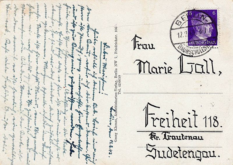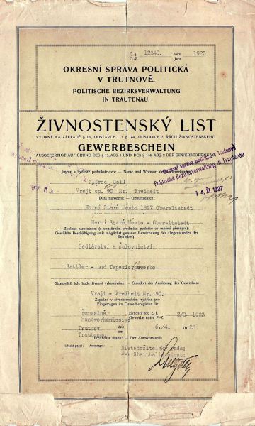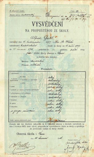 Například hned výmluvná fotografie svobodských fotbalistů z konce 30. let minulého století publikovaná už jindy při jiné příležitosti s bratry Adolfem a Alfonsem Gallovými stojícími v zadní řadě zleva. Od zapálení pro sport v řadách Turnerského svazu už byl jen krůček k členství v NSDAP. Nejhorlivější byl podle poválečného svobodského kronikáře Alfred, který doloženě absolvoval 1. až 5. ročník české obecné školy na „handlu" v Úpici. Kdo ví, zda počátky jeho "světonázoru" nevyklíčily na šikaně od českých spolužáků? Dokladem té doby je vysvědčení z 5. třídy vystavené v červnu 1911. Milým sběratelským protikladem je barevná pohlednice Svobody nad Úpou snímaná z Kravího vrchu vydaná místním majitelem papírnictví Aloisem Jordanem. Svému oblíbenému učiteli Vojtěchu Bourovi ji 4. června 1911 odeslal s česky psaným pozdravem žák Alfred Gall a podepsali ji jeho rodiče, oba bratři, sestra Marta a sestřenice Greta. Vygůglený seznam třídy ze školního almanachu je jen současná internetová třešnička na dortu. U jiné pohlednice je výrazná adresa, dlouho mylně přisuzovaná matce bratrů Gallů Marii rozené Kochové z Rýchor. Nejen důvěrné oslovení zdrobnělinou Marichen a svobodské čp. 118 vedou k manželce pisatele s podpisem Dolfi Marii Sturmové, narozené 6. dubna 1914 právě v tomto domě, která se za Adolfa Galla ve Svobodě nad Úpou 6. října 1928 provdala. Hádankou zůstává, co asi dělal mladý muž vojenského věku u nějaké roty okouzlený katedrálou v roce 1943 v Berlíně? Výmluvný je i Alfredův dvojjazyčný Živnostenský list z roku 1923, i když pro leckoho je to jen cár papíru. Při pomyšlení, kolik asi takových lejster skončilo nenávratně ve sběrová makulatuře i v žáru lokálních topidel, citliví badatelé a archiváři možná i slzu zamáčknou. A sběratelé, ti jsou za zachovalý Domovský list jako je ten z Pece pod Sněžkou pro manželku Alfreda Galla Idu Mitlöhnerovou, když byla ještě slečna, ochotni zaplatit hříšné peníze i bez jakéhokoliv vztahu k uvedené osobě či místu pobytu jen pro dekorativnost dobové tiskoviny zhodnocené kolkem, úředním razítkem a podpisy potentátů. Na stejné úrovni je legitimace Okresní zdravotní pojišťovny v Trutnově pro příbuzného Viktora Kneifela s vylepenými výplatními známkami. I pouhý zápis z matriky, dokládající, že svobodských sourozenců Gallových bylo fakticky šest, neboť třetí dcera Magdalena narozená v roce 1901 v Dolních Lysečinách zemřela v kojeneckém věku, cosi o životě rodiny vypovídá. Jako reakce na novinový článek mi do mobilu připlachtil od šlechetného dárce jako „labutí píseň" stavební plán domu Alfreda Galla čp. 180 od místní architektonické kanceláře Fischer a Hollmann. Na závěr současný snímek „Koppengeista", kterého žádný norek jen tak hned nevyzunkne, protože je z kamene. Bude to taková pěkná cimrmanovská tečka za tím naším případem.