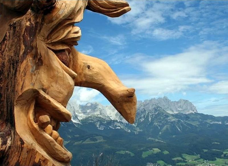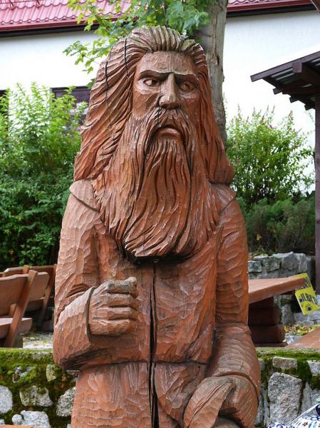 V Krkonoších, potažmo v Česku, není lehké najít dědinu, kde by na veřejném prostranství nebo u některé z chalup nepostávala více či méně zdařilá postava vousatého pantáty s fajfkou. Určitě to není pouze tím, že již několik generací vyrostlo s televizním Večerníčkem a jedním z jeho nejoblíbenějších seriálů Krkonošské pohádky. Jejich chlapácký Krakonoš v podání Františka Peterky, Anče, Kuba, hajnej a konec konců i ten chamtivý a nesympatický Trautenberk, rezonuje skoro v každém z nás. Již dávno před tím bylo možné semo tamo spatřit hodnotnou sochu horského ducha od renomovaného umělce na náměstí nebo v parku. Ten uprostřed Krakonošovy kašny na Krakonošově náměstí v Trutnově býval dlouho chloubou celé oblasti východních Krkonoš. Nemluvě o Šalounově soše v Hořicích. Shrnuto a podtrženo! Jako personifikace Ducha hor je to sympatická a fotogenická osobnost, kterou si snad každý dokáže okamžitě představit. Zkuste si něco takového s Muhu, Marzebillou nebo Hejmonem. (Patrioti z Jizerských, Krušných a Novohradských hor jistě prominou). Já ho přímo zbožňuji a v okouzlené zaslepenosti věřím, že nejvyšší pán na Krkonoších je jen jeden, ať už mu říkáme jakkoliv. Zbaběle opouštím luhy a háje české kotliny, protože navštívit, spočítat, vyfotit a popsat jen zlomek z toho množství Krakonošů, kteří ji zdobí, je úkol nadlidský. Obří šlápoty vedou však i za hranice a malá ochutnávka se do dubnového čísla přímo nabízí. Očekávání vtipálků zklamu - není to apríl.