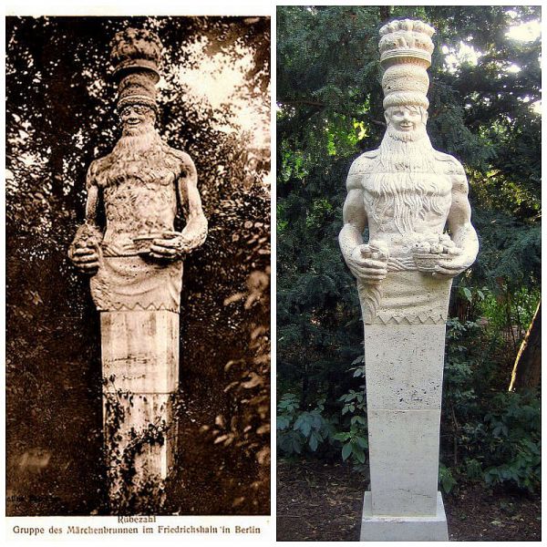Žádné noviny nejsou nafukovací a ani článek o sebezajímavějším tématu by neměl nudit. Zejména píše-li ho „mistr" dlouhých souvětí se ztrátou soudnosti a sebekontroly. Webová stránka financovaná z vlastní kapsy, kterou si píšu jako památníček sám pro sebe, sem tam nějaký ten řádek nebo obrázek navíc unést musí. Klopotně sesbírané informace je škoda zahodit. Tak aspoň heslovitě jako bonus i pro všechny geronty, kteří jsou zvyklí dotahovat věci dokonce. Soch bytosti, které my v české kotlině říkáme Krakonoš je zejména v Německu v enklávách osídlených vyhnanci z Krkonoš včetně rozsáhlého podhůří na jejich slezské straně daleko víc než popsané vzorky. Téměř každý spolek rodáků si jako vzpomínku na ztracenou domovinu vztyčil nějakého toho Rýbrcoula. V některých figurách by ho české oko uvyklé na laskavého jen trochu přerostlého myslivečka ani nehledalo. *** V nejstarším a jednom z největších veřejných parků v Berlíně, Lidovém parku Friedrichshain navrhl architekt Ludwig Hoffmann už koncem 19. století velkolepý komplex Fontány pohádek s množstvím pohádkových postav. Neobyčejně plodný německý sochař Georg Wrba (1872 - 1939) vytvořil čtyři Hermy (odborníci vědí, že jsou to busty nebo celá poprsí na typickém vyvýšeném soklu - já jsem se musel podívat do encyklopedie) nazvané Obr - Lidožrout, Obrova dcera, Paní Holle (volně Bába Zima) a Rübezahl. Bohužel jsou si podobní jako jednovaječná čtyřčata a liší se jen drobnými atributy. Mezi laiky jsou to všichni Rübezahlové. Teprve v roce 2007 byla dokončena obnova II. světovou válkou a následně vandaly poničených soch a procházka parkem plným uměleckých děl při návštěvě Berlína určitě za to stojí. *** Stejně nápadně podobné jsou sochy v Bensheimu a Marktoberdorfu i když drobné odlišnosti se vysledovat dají. Bensheim je partnerské město Hostinného a původní Krakonoš vztyčený už v roce 1956 ač z dubového dřeva trpěl vlivy povětrnosti a navíc mu vandalové několikrát zcizili hůl. Nyní je po restaurování uložen v Městském muzeu. Současná bronzová socha je téměř identický odlitek originálu od Hanse Horsta Beckerta v Marktoberdorfu. Odhalen byl 8. září 1985. *** Krkonošský spolek v Bambergu nechal postavit na úpatí hory Altenburg 12. července 1964 sochu od místního sochaře Georga Schleichera (1893 - 1976) věnujícího se především sakrálnímu umění. Rübezahl, údajně jeho poslední práce, vkus svého tvůrce nezapře, jak je vidět i na historické pohlednici. *** To bývalý učitel a později nezávislý umělec Georg Fugh (1898 - 1976) vytvořil pro děti v přírodní galerii kolem školy v Neumünsteru řadu pohádkových postav, mezi nimi i Krakonoše (1964) vytesaného z kamene s trčící bradkou inspirovanou známým obrazem Moritze Schwinda. *** Jednu z nejnovějších soch odhalil okresní a městský spolek vystěhovalců z Jelení Hory v Krkonoších 31. května 2024 v lázeňském parku Bad Harzburgu v pohoří Harz. Renomovaný sochař Ewald Rumpf, který se slavnosti osobně zúčastnil, ji pojal v tradičně konzervativním a nevynalézavém stylu. *** To Rakušáci v Tyrolských Alpách jsou jiní pašáci. Krajina s úchvatným výhledem na pohoří Wilder Kaiser i obec Ellmau, co do počtu obyvatel jen nepatrně větší než Svoboda nad Úpou, je jistě notorickým sledovačům nekonečných televizních seriálů, jako je „Doktor z hor" důvěrně známá. Ke zdejší atrakci patří nejdelší „řezbářská stezka" v Rakousku. Je sice dlouhá jen necelé tři kilometry, ale zdobí ji 22 unikátních vyřezávaných figur mnohé z upravených samorostů. Vede k Rübezahlově pastvině a podle ní má jméno Rübezahl. To jsou panorámata, táto!