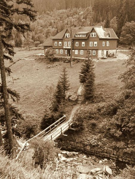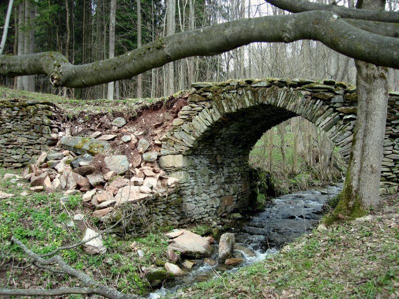 ... aneb „Lávky, mostky a mosty" - abych neurážel božského Hemingwaye laciným vykrádáním světoznámého názvu jeho románu. Krajina Krkonoš to nejsou jen vrcholky hor, ale také doly, údolí a údolíčka s prameništi a meandrujícími koryty řek, zurčením bystřin a bubláním potůčků. A za vší tou idylou je skryto i jedno velké dilema - jak se dostat z jednoho břehu na druhý. Stružka se dá překročit, potůček přeskočit, větší potok přeskákat po kamenech, bystřina přebrodit, říčka přeplavat. Ale co objemná zavazadla, dobytek, povozy či dopravní prostředky, chceme-li se dostat suchou nohou na druhou stranu toku? Čím hloub do vnitrozemí jsou řeky vodnatější, širší a v zástavbě už převážně regulované. Nějaké stálé přemostění je nezbytné. Ani v minulosti nebývala vodní díla tesařů i kameníků záležitostí pouze funkční a praktickou. Dodnes se architekti předhánějí také ve výtvarném ztvárnění i té nejmenší lávky uprostřed lesní tišiny. Příkladná je série nainstalovaných lávek, které ve spolupráci se Správou KRNAP navrhli a vlastními silami postavili studenti Fakulty architektury ČVUT v Praze na území národního parku. Jsou v různém stylovém provedení z různých tradičních i moderních materiálů, snadno demontovatelné, praktické a navíc hezké. Jinou estetiku dopřál čas stavbám našich předků dochovaných často už jen na historických pohlednicích. Do nich budu tentokrát převážně sahat pro ilustrace. Ikonickým regionálním představitelem starobylosti spojené s krásou na pohled je klenutý jednoobloukový most veterán z rovnaného kamene údajně z 16. století v zaniklých Sklenářovicích. Ladnost linií a kamenický fortel kladení kamenů na sucho je patrný i z jeho značně zdevastovaného stavu na fotografii tehdejšího ředitele Krkonošského muzea ve Vrchlabí Míly Bartoše z května 1992, kdy jsme tam spolu byli na obhlídce. Pozdější generální přestavbou v roce 1998 kouzlo starobylosti poněkud vyprchalo. Dokonce ani není jediný. Podobné jsou v Albeřicích i v Lysečinách nebo momentálně v rekonstrukci v zaniklé obci Debrné. Některé stále slouží svému účelu, ale co do fotogeničnosti je Sklenářovický most „absolute number one".