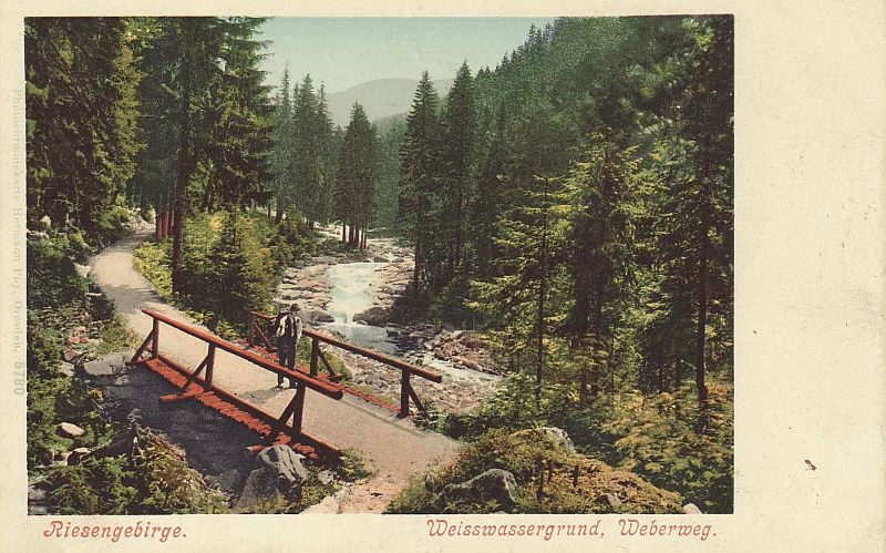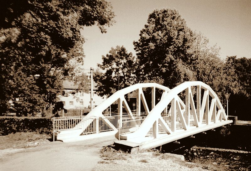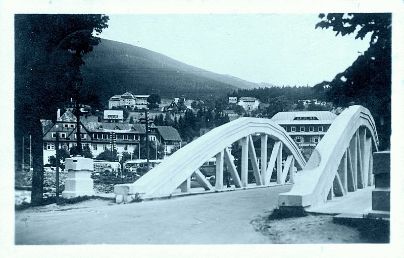 Takový architektonický skvost jako je železniční viadukt u Smržovky vyhlášený právem za národní technickou památku sice v regionu nemáme, i když pohlednice, kde se kříží dvoupatrový železniční most na trati Trutnov - Královec se silnicí a přemostěním říčky Ličná, je také nevídaná technická rarita. Uhranutý krásou jako nekritičtí „šotouši" z ní ovšem nejsem. Internetoví „neználci" si ho často pletou s jinou regionální zvláštností přímo v Trutnově - Poříčí. Nad Petříkovskou ulicí se kříží dva železniční nadjezdy, po kterých opravdu jezdí vlaky. V Bernarticích byl spodní viadukt nad silnicí postaven dodatečně pouze jako zpevnění. I prostá dřevěná lávka dokáže svou jednoduchostí vyvolat emoce. Mnoho těch původních postrádalo zábradlí a dnešní soudný člověk by na ně nevstoupil snad ani „za zlaté prase". Při pohledu na působivou neautorizovanou fotografii ze slavnosti svěcení praporu spolku vysloužilých vojáků v Peci pod Sněžkou 8. května 1932 nejednoho diváka napadne, jaké štěstí, že skupinka rozjásaných družiček nemusela cestou od kapličky Panny Marie v Bukovém údolí, kde se konala oficiální část aktu k hotelu Zelený potok na závěrečnou veselici přecházet lávku přes Vlčí potok vpravo v pozadí. To by se nejspíš orosil i ostřílený vysloužilý voják v čele. Ze zlaté éry pohlednic se jich celá řada zachovala z turisticky nejlákavějších lokalit. Z té nejatraktivnější pěší procházkové trasy z centra Pece pod Sněžkou Bukovým údolím přes Růžový a Obří důl podél mladinké Úpy na nejvyšší kótu České země se jich i s početnými lávkami a můstky pochopitelně zachovalo nejvíc. Konkurují jim ty z Weberovy cesty údolím Bílého Labe, z Luisiny cesty Těsným dolem v Janských Lázních i ze zaniklé Wihardovy promenády podél Janského potoka od lázeňské kolonády do Svobody nad Úpou. Výběr ukázek je čistě náhodný a žádné skryté tajemství nenabízí. I když při troše fantazie... Naprosto tuctová lávka v Růžovém dole u Boudy pod Studničnou možná ještě pamatuje mého slavnějšího kolegu přes řemeslo hospodáře Franze Mittlöhnera, jednoho z prvních místních výrobců kvalitních jasanových lyží s vlastním originálním designem. Mnoho lávek a mostů vzalo za své při katastrofální povodni v roce 1897. Řada v současné době vyhlašovaných technických památek má tak v rodném listě často datum ze začátku 20. století. Místo těžkých masivních přemostění z kamenných kvádrů vznikly na mnoha tocích v regionu lehké vzdušné příhradové konstrukce z nýtovaných ocelových profilů. Jeden z nich máme denně na očích i ve Svobodě nad Úpou a našel by se skoro ve všech městech v okolí. Některé po kvalitní rekonstrukci dál spolehlivě slouží a má-li zastupitelstvo a provádějící architekt i dostatek odvahy a místo obligátní černé nebo šedé barvy zvolí nějaký jiný charakteristický odstín jako příkladně Modrý most v Horním Maršově, stane se „obyčejný most" významným turistickým lákadlem daného místa. Podobně jako je erbovním znakem Špindlerova Mlýna nedávno pečlivě zrekonstruovaný Bílý most se dvěma souběžnými horními segmentovými oblouky ze železobetonu z roku 1911. Podobný mají v Hostinném i v sousedních Mladých Bukách. Býval i v našem městě na Rýchorském sídlišti mezi oběma známými papírnami a nesl vozovku přes Úpu na Nový Svět. Mezi uvedenými mosty to sice nebyla „nejostřejší tužka v penále", spíš architektonické nedochůdče. Nemusí být člověk zrovna estét, aby na přiložených snímcích viděl, jak se technickými prvky dá doslova „zprasit" krajina. Ale při představě, jak by po obnově a vhodném nátěru uprostřed fádního nenápaditého totalitního sídliště svítil, ukápne nejednomu staromilci slzička.