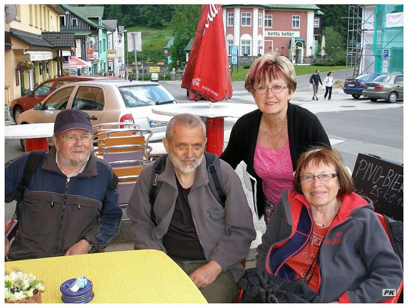 Co naplat, do hejnka svérázných, originálních a navzájem odlišných Krakonošů různého provedení patří. Zejména, když se s okamžikem našeho seznámení pojí veskrze příjemné vzpomínky. Koupil jsem ho po dlouhém váhání v Peci pod Sněžkou v pátek 25. června 2010 na vycházce s Mílou Bartošem, jeho ženou Margit a dalšími přáteli Veselého výletu při zastávce na kafíčko v cukrárně před parkovištěm U kapličky. Vraceli jsme se ze Setkání potomků krkonošské šlechty a instalování hraničního kamene u Luční boudy na památku výročí 300. let od ukončení vleklých hraničních sporů. Čekala nás ještě vernisáž výstavy fotografií Christiny Czernin - Morzin v galerii Veselý výlet. Po dni plném zážitků v milé společnosti jsem se nechal snadno přesvědčit k furiantskému „rozšoupnutí" a zakoupení dřevěného panáčka. Stál rovných 150 českých peněz a celou událost zdokumentoval všudypřítomný pohotový fotoreportér Pavel Křivka.