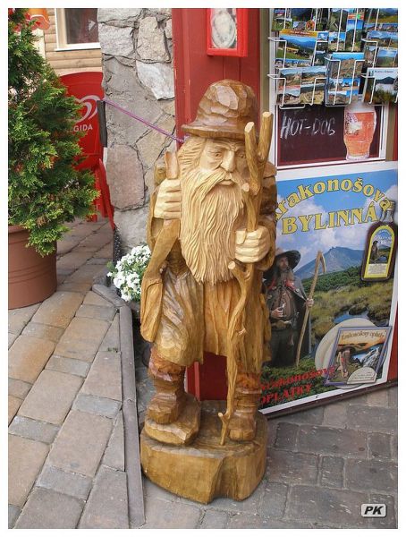 Trpaslíky nemám rád, stejně jako děd Vševěd Járy Cimrmana. Zvlášť ty, kteří se vydávají za Krakonoše. Ale v zájmu objektivity, protože dobře vím, že Duch hor může mít podob nepočítaně a jeho nekritickým obdivovatelům nezbývá než se s tím smířit, vezmu občas některého na milost. Já je ovšem nechytám ani na vařenou bramboru ani na škvarek. Ani na ně nemám takové zařízení jako vynalézavý Vševěd z Cimrmanova parádního kusu Dlouhý, Široký a Krátkozraký, abych jich ráno vytáhl takových šest, i pět. Já si je musím za ušetřený peníz poctivě koupit. Jeden takový mrňous se už dlouho hlásí jako adept na reprezentanta pro měsíc prosinec. Snad proto, že v předvánočním čase by si měli lidé navzájem odpouštět své prohřešky, promíjím neznámému tvůrci, který zřejmě šmik šmik řezbářským dlátem umí a přitom má o krkonošském obrovi takové zvrácené představy. Nejen, že je panáček opravdu mrňavý - s podstavcem až po bambuli na kulichu měří všeho všudy 18 centimetrů. Ovlivněn módními amerikanismy, vyřezal mu mistr i tu čepici némlich stejnou jakou nosí Santa Klaus. Poláci, kteří přišli do Krkonoš ze zemědělského zapadákova východních Kres, Volyně a Haliče teprve se změnou hranic po druhé světové válce a vědí o majestátné a démonické postavě slezského Rübezahla s odpuštěním „prd a vořech" si právě takového prcka oblíbili. Říkají mu Skarbnik - strážce pokladů v podzemní říši. Jeho veličenstvo Krakonoš, jak Rýbrcoulovi důvěrně říká české etnikum, má ale takových pidimužíků v dolech, jeskyních a slujích svého horského panství od Jizerských hor až k Adršpachu k dispozici jako smetí.