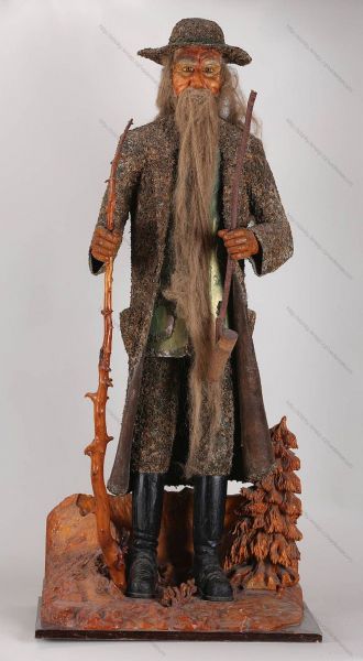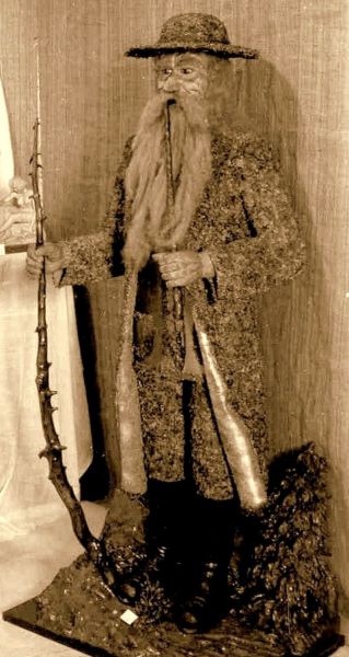 Teprve po letech na základě uvedené fotografie mě pronásleduje neodbytná myšlenka, kam se ten impozantní panák po skončení výstavy asi poděl. Několik už jsem jich měl v merku, ale ona to v podstatě žádná záhada není. Jak praví odvěká zkušenost - největší tma je pod svícnem. Asi metr čtyřicet centimetrů vysoký panáček si hoví pod inventárním číslem N 4022 jako lidová dřevořezba Krakonoše ze 40. let 20. století v národopisné sbírce Krkonošského muzea ve Vrchlabí. V krátkém průvodním popisku stojí, že plastika Krakonoše ve skoro životní velikosti je dílem řezbáře Antonína Kužela z Vrchlabí. Až donedávna byl k vidění v expozici řemesel v jednom ze čtyř historických domků Krkonošského muzea na Kostelním náměstí. Muzeum je z důvodů rozsáhlé rekonstrukce od 1. května 2025 na dva roky uzavřeno. Podle sdělení kurátora sbírek se s opětovnou instalací zajímavé figury počítá i v nové expozici. Dominantou Krkonošské výstavy měla být původně skulptura letícího Krakonoše z hořického pískovce o rozměrech 250 x 250 cm od pražské akademické sochařky a toho času chalupářky z Pece pod Sněžkou Františky Stupecké, rodačky z Holovous u Jičína (1913 - 1995) absolventky Akademie výtvarných umění u profesora Otakara Španiela. Přestože k dohodě výstavní komise s vedením města i přes odsouhlasenou cenu 100 tisíc korun nakonec nedspěla, mohla být socha při troše štěstí umístěna alespoň na uvažovaném veřejném prostranství vpravo ve svahu u staré polikliniky. Ani k tomu z neznámých důvodů nedošlo. V depozitáři Muzea Podkrkonoší zůstal jen asi třiceticentimetrový model z pálené hlíny zakoupený tehdejším MNV v Trutnově a předaný do sbírek. Hotová socha byla v pražském ateliéru umělkyně v roce 1950 údajně posuzována komisí Svazu československých výtvarných umělců z Hradce Králové - a jakoby se slehla zem. V Trutnově ji nikdy nikdo neviděl. Její téměř identické dvojče s datem vzniku 1957 lze spatřit v horní části Jeleního příkopu na Pražském hradě. Jak to bylo doopravdy, je zahaleno rouškou soudružských tajemství. Milou trvalou upomínkou na neoficiálního patrona velkorysé výstavy v nanicovaté době je drobný aluminiový výstavní odznáček s portrétem Krakonoše a počáteční iniciálou pořádajícího města.