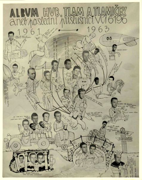 Aspoň tak nás viděli kamarádi a zejména autor kresleného tabla na odchodnou, v zájmu zachování vojenského tajemství pochopitelně nejmenovaný Štěpán Riedel. (Zmiňovaná dvojice je při levém okraji uprostřed s průvodním textem: Znáte nejkrásnější vlasti kout? /Krkonoše/ - Hle zde jejich borec a kohout). Byli jsme mladí, nezkušení a blbí, že jsme si ten potenciální zdroj budoucího možného zisku nedali tenkrát zaregistrovat. Já osobně bych si pod těmi dvěma slovy dokázal představit mužské pěvecké duo, trio, kvartet i větší skupinu. Vlastně jakýkoliv pěvecký či muzikantský ansámbl. Stejně tak sportovní mančaft od hokeje po skupinové seskoky padákem. I letce akrobatických letadel by slušel. Váhání není na místě. Značka je stále volná. A zadarmo.